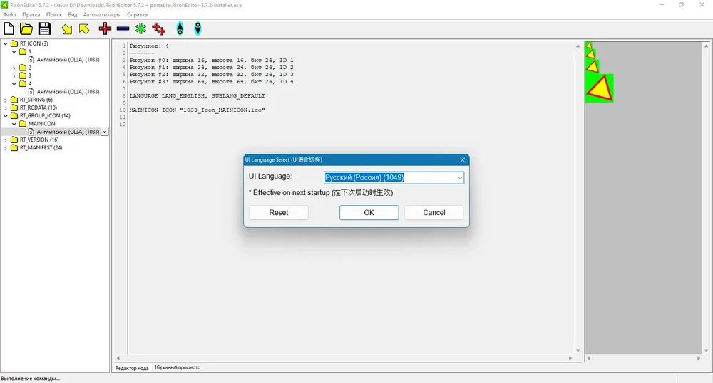 RisohEditor — это бесплатный редактор ресурсов для Win32-приложений с открытым исходным кодом, предназначенный для работы с файлами EXE, DLL, RC и RES. Программа позволяет детально редактировать, добавлять, извлекать и управлять ресурсами, включая диалоговые окна, меню, значки, строки и другие компоненты. Интерфейс переведён на множество языков, включая русский, что делает инструмент доступным для широкого круга пользователей.