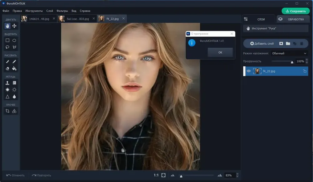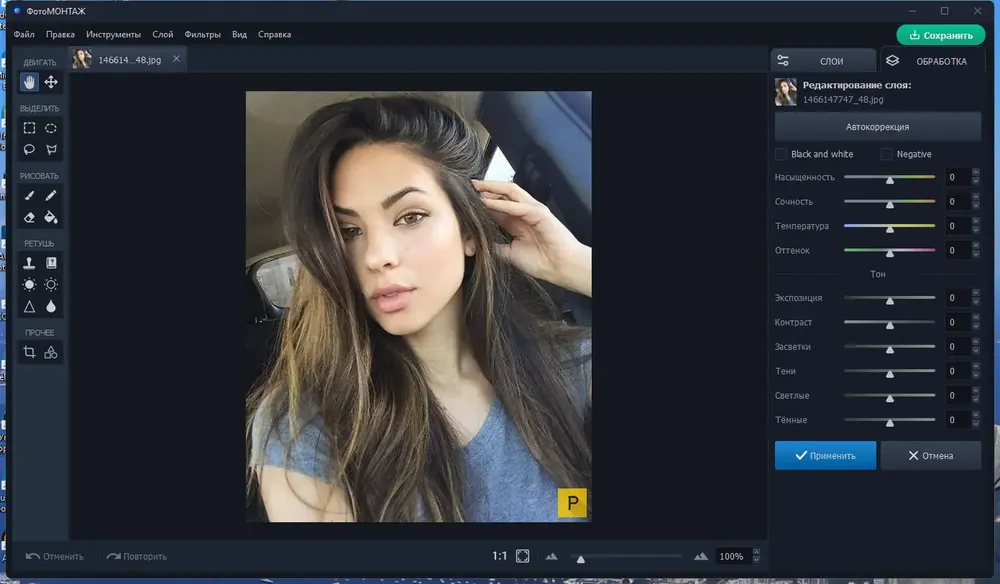 Работа с программой начинается с открытия изображения в редакторе. Добавляя новые слои, можно вставлять дополнительные фото, текстуры или рисовать поверх. Маски позволяют скрывать или проявлять части слоя, плавно смешивая границы. Для ретуши используются кисти dodge&burn — они помогают осветлить или затемнить участки лица, подчеркнув скулы и придав выразительность глазам. Цветокоррекция выполняется как с помощью кривых, так и с применением готовых фильтров. Автоматическое улучшение подходит для быстрой обработки тусклых снимков, а ручные инструменты дают полный контроль над результатом. Работа с несколькими вкладками позволяет параллельно редактировать разные фотографий и переносить элементы между ними.
