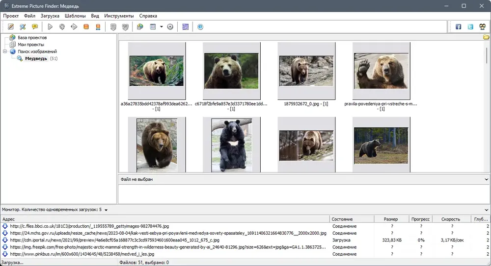 Extreme Picture Finder — это инструмент для автоматического поиска и загрузки файлов из интернета, включая изображения, видео, музыку и архивы. Программа эффективно работает с TGP-сайтами и поддерживает поиск по ключевым словам через поисковые системы. Утилита экономит время, исключая необходимость ручного просмотра страниц и взаимодействия с рекламой.
