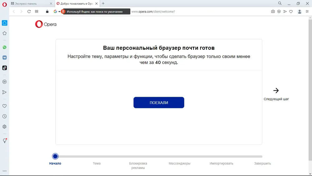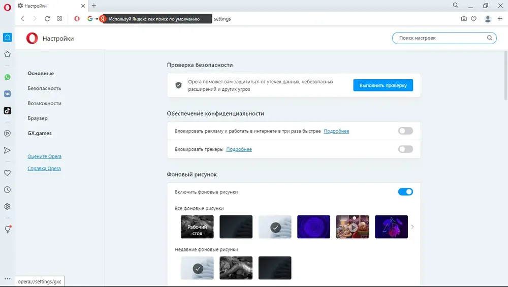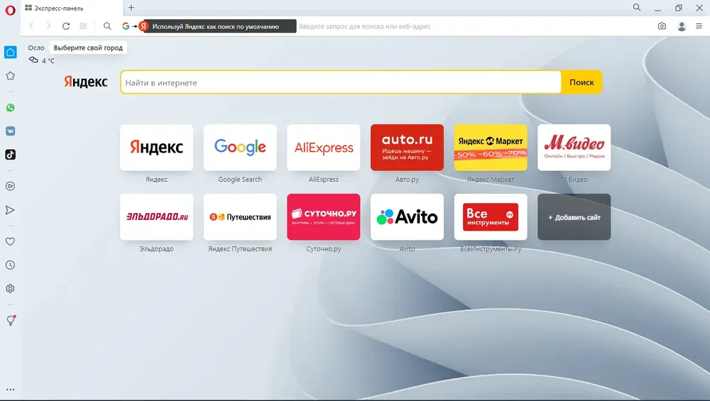 После установки браузер запускается с интуитивно понятным интерфейсом, где основные функции доступны из боковой панели. Пользователь может настроить начальную страницу, добавив нужные сайты в экспресс-панель, а также активировать встроенный vpn для защиты трафика. Поиск осуществляется через строку адреса с поддержкой автозаполнения и предложением результатов из нескольких поисковых систем. Для сохранения контента используется Копилка, куда добавляются страницы с возможностью категоризации и поиска. Каждое окно можно персонализировать, управляя отображением инструментов и панелей.
