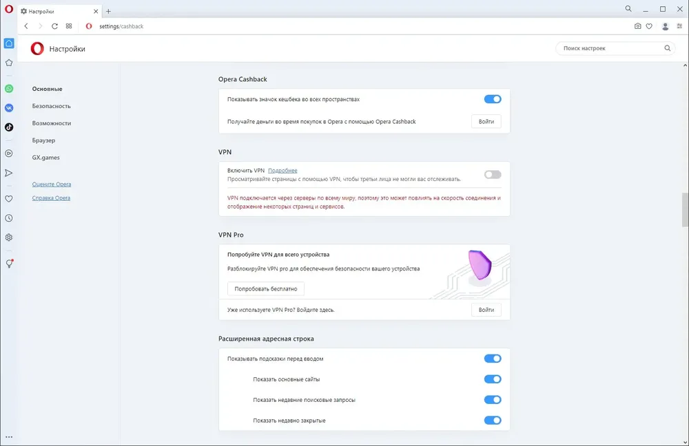Opera — это не просто браузер, а полноценная платформа для взаимодействия с интернетом. Он предлагает встроенные инструменты, которые традиционно требуют установки дополнительных расширений в других обозревателях. Среди ключевых особенностей — встроенный VPN, блокировщик рекламы и защита от трекеров, что обеспечивает высокий уровень конфиденциальности. Благодаря оптимизации трафика, Opera особенно эффективна при использовании на медленных соединениях, позволяя просматривать контент без задержек.