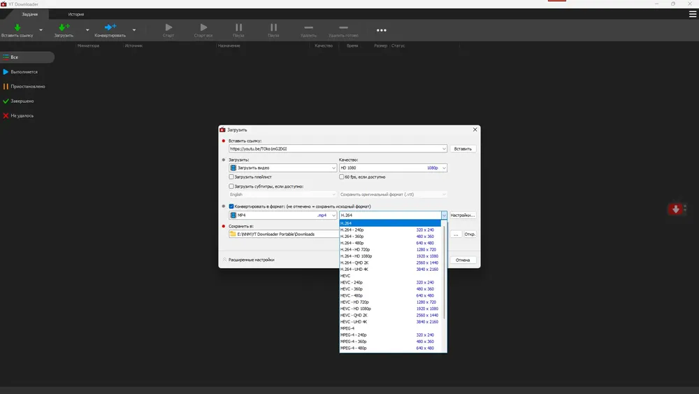 - Возможность скачать видео в разрешениях до 4k, включая HD 1080p и 720p