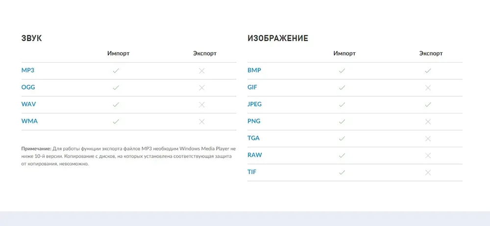 - Поддержка форматов JPEG, PNG, MP4, AVI и других распространённых типов файлов
