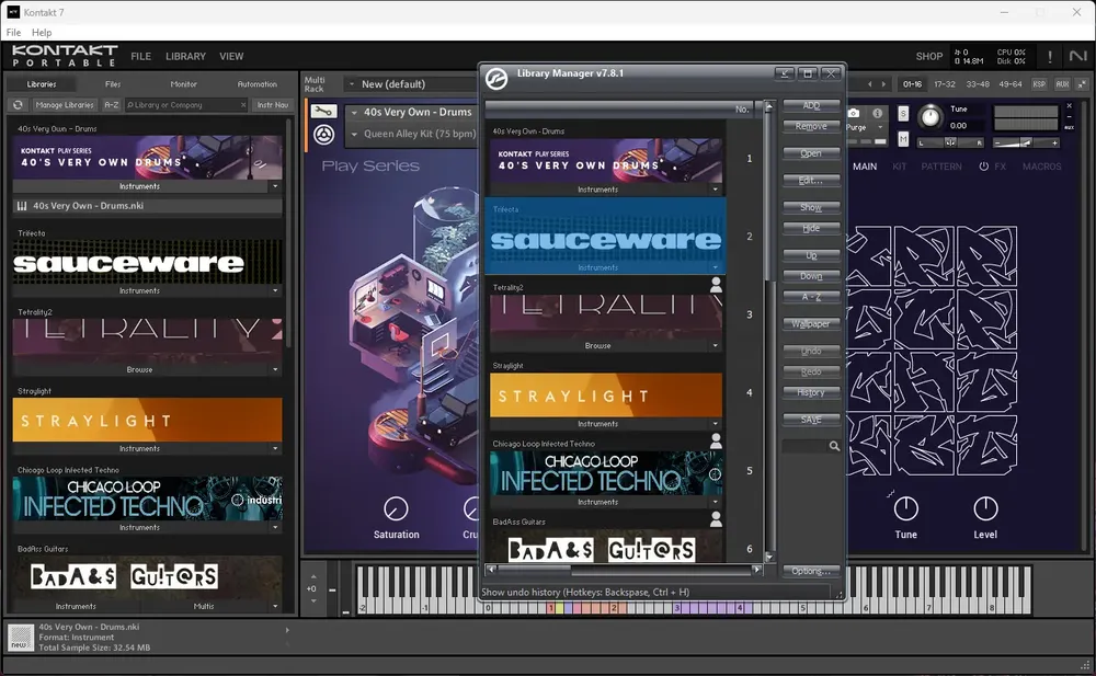 Работа с Native Instruments начинается с загрузки инструмента через встроенный браузер, где можно искать пресеты по тегам, названиям или избранным категориям. В режиме Rack View можно загружать несколько инструментов одновременно, а в Single View — сосредоточиться на редактировании одного. Навигация по интерфейсу упрощена за счёт текстовых подсказок, масштабирования и интеллектуального поиска. Редактор зон позволяет точно настраивать поведение каждого сэмпла, задавать условия срабатывания, кроссфейды и маршрутизацию. Для управления параметрами доступны MIDI-контроллеры, включая устройства линейки mk3, а также поддержка скриптов на Lua и KSP.
