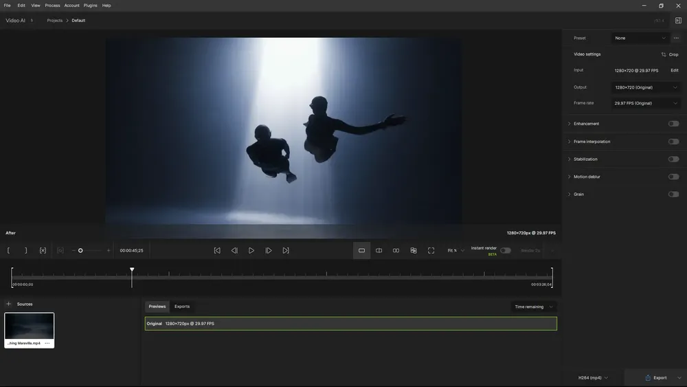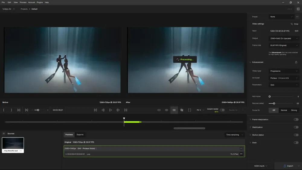 Работа с программой начинается с импорта видеофайла в интерфейс. Пользователь выбирает нужный режим обработки — увеличение разрешения, подавление шумов или стабилизация — и настраивает параметры вывода. После предварительного просмотра можно запустить полную обработку, которая выполняется с учётом выбранного профиля и аппаратных возможностей системы. Поддержка GPU ускоряет рендеринг, особенно при работе с длинными роликами или высокими разрешениями.