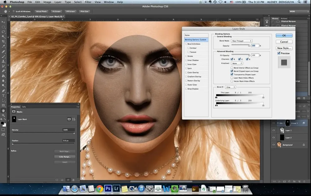 Работа в Adobe Photoshop начинается с анализа изображения и составления плана ретуши. Пользователь последовательно применяет инструменты Dodge & Burn для моделирования объема, использует Liquify для коррекции пропорций тела и лица, а также осваивает техники отрисовки макияжа и восстановления деталей одежды. Для предметной съемки важны навыки обтравки, особенно на сложных фонах, а также умение корректировать блики и отражения на ювелирных изделиях и стеклянных поверхностях. Финальные этапы включают тонирование кожи с помощью Solid Color и Chanel Mixer, а также стилизацию с использованием Color Balance и Gradient Map.