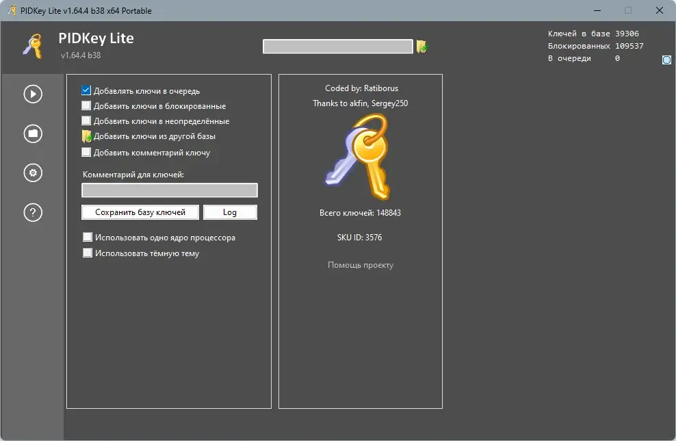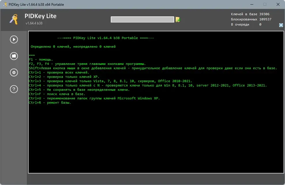 Работа с PIDKey Lite начинается с запуска приложения и загрузки базы данных. При первом использовании можно подключить существующую базу с помощью командной строки, указав путь к файлу pkbase.db. Для обновления структуры базы после установки новой версии рекомендуется выполнить операцию ремонта через сочетание клавиш Ctrl+R. Программа позволяет добавлять ключи вручную или импортировать их пакетно, после чего автоматически проверяет их корректность и определяет тип лицензии. Также доступна функция экспорта конфигураций с помощью параметра /unpack, который распаковывает xrm-ms файлы рядом с исполняемым файлом. Пользователи могут быстро находить нужные записи по фильтрам, обновлять статус лицензий и перемещать неактуальные ключи в архив или блокированные.