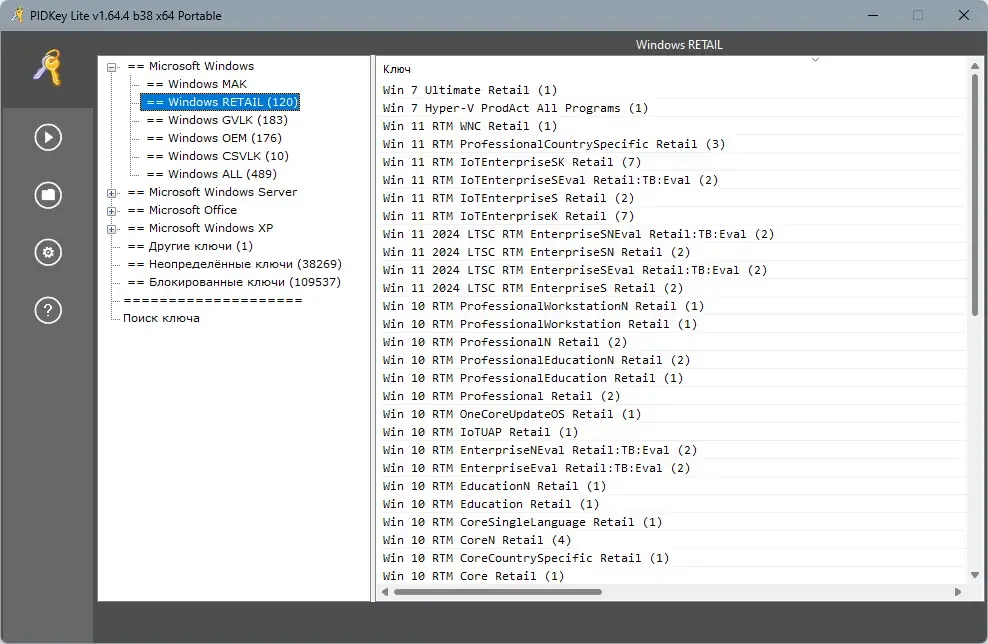 PIDKey Lite разработана как инструмент для удобного управления продукт-ключами операционных систем и программного обеспечения Microsoft. В отличие от предшественника, где данные хранились в текстовых файлах, новая версия использует SQL-базу, что значительно повышает скорость поиска, стабильность хранения и защиту от повреждений. Программа совместима с ключами Windows и Office, поддерживает импорт, экспорт и резервное копирование данных. Это делает её универсальным решением для системных администраторов и пользователей, работающих с большим количеством лицензий.