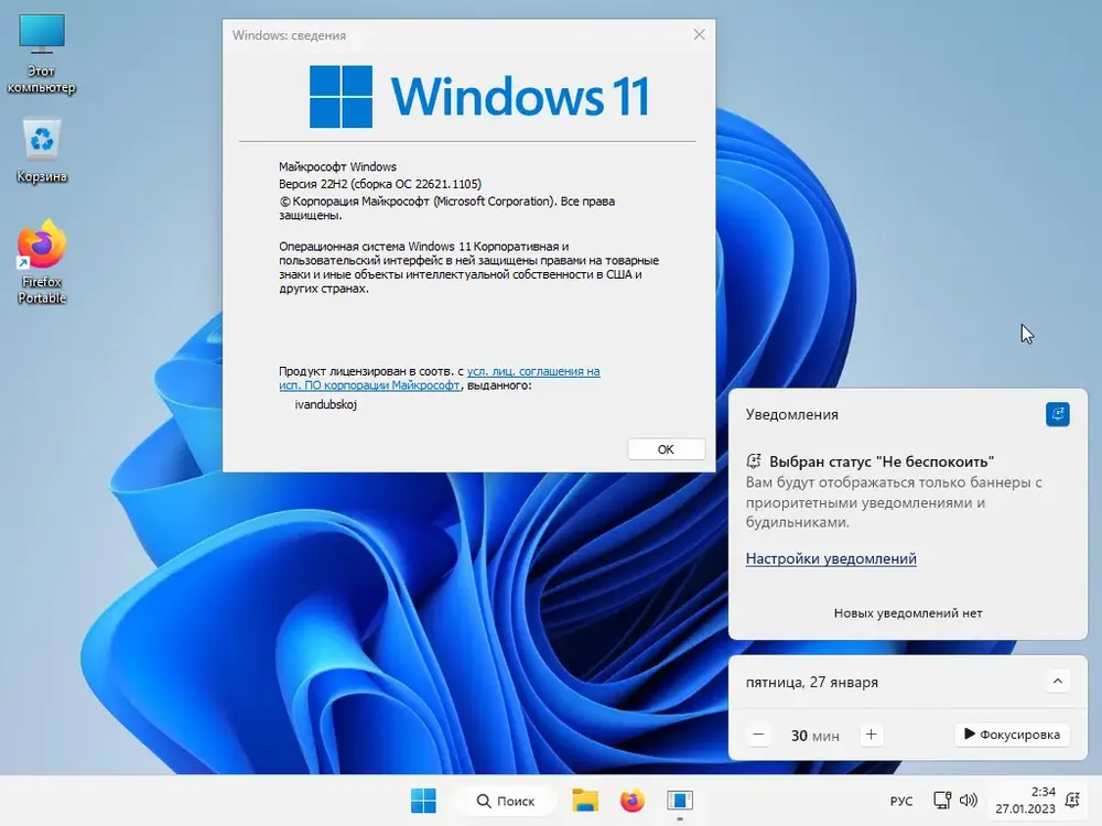 Скачать торрент Windows 11 3in1 x64 22Н2 (build 22621.1105) by ivandubskoj 26.01.2023 [Ru]