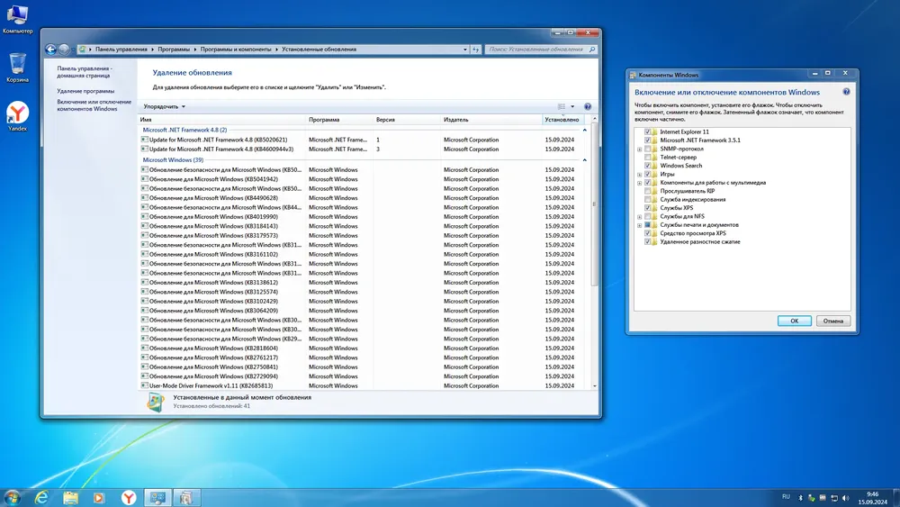 - Полная готовность к работе после установки: включены 7-Zip, DirectX, Yandex и другие компоненты