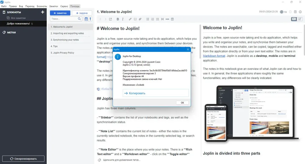 Архитектура Joplin построена на принципах автономности и контроля пользователя над своими данными.
