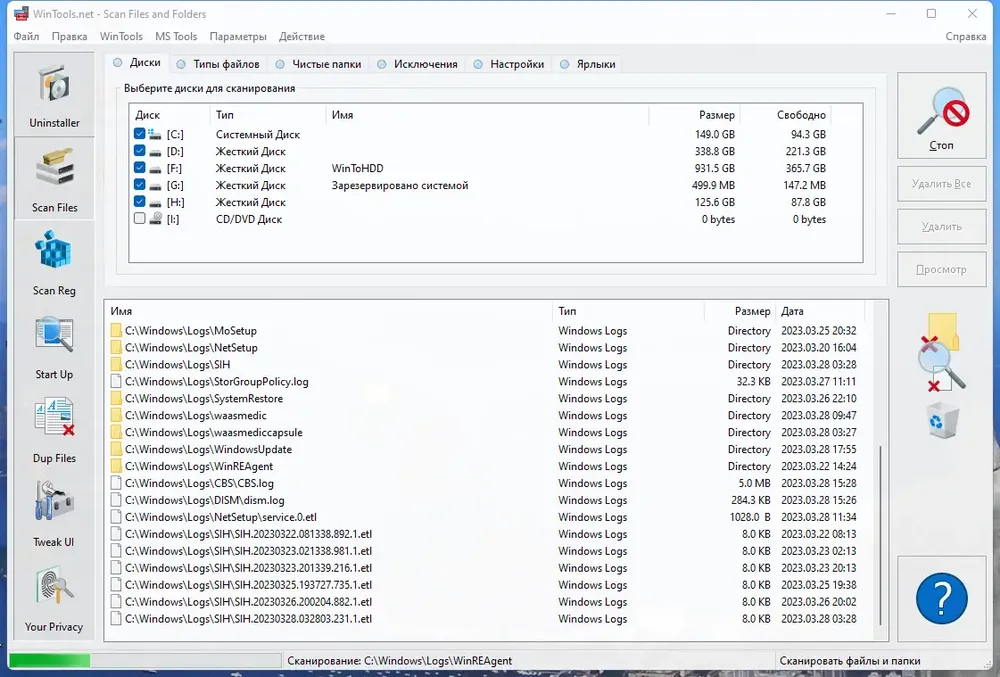 - Инструмент Scan Files находит временные, кэшированные и остаточные файлы, оставленные приложениями, и позволяет удалить их, освобождая дисковое пространство и ускоряя работу системы.