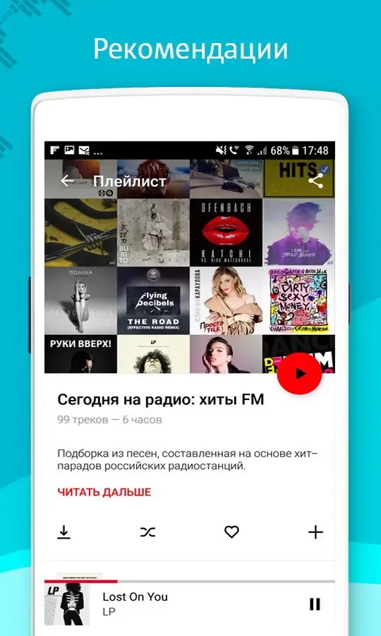 - Тематические подборки для разных настроений и ситуаций — на работу, тренировки, отдых