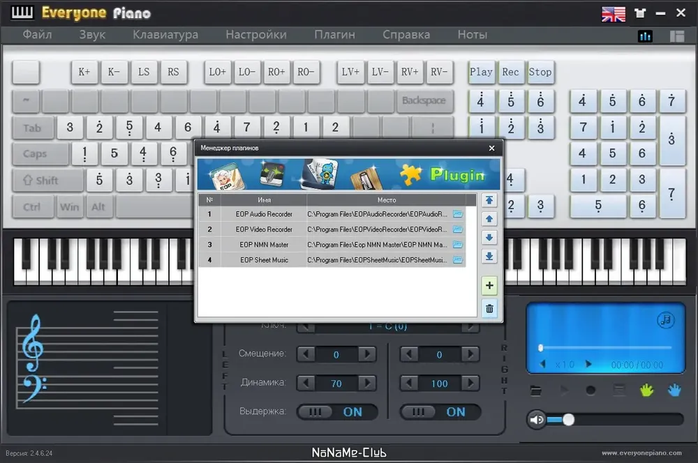 Первое использование программы не требует сложной настройки — клавиши фортепиано отображаются на экране, а управление осуществляется через стандартную клавиатуру. Клавиши Q до P отвечают за белые ноты, а цифры 1–9 — за чёрные, что позволяет играть в двух октавах. Чтобы изменить октаву, используются дополнительные клавиши, а для настройки интерфейса и звука предусмотрен раздел параметров. Для полноценной работы с MIDI-устройствами нужно подключить оборудование и указать его в настройках программы. Чтобы начать запись, достаточно нажать соответствующую кнопку и играть — трек сохраняется в формате EOP с возможностью последующего редактирования. Подробное руководство по функциям доступно в справочном разделе, где объясняется, как пользоваться всеми инструментами приложения.
