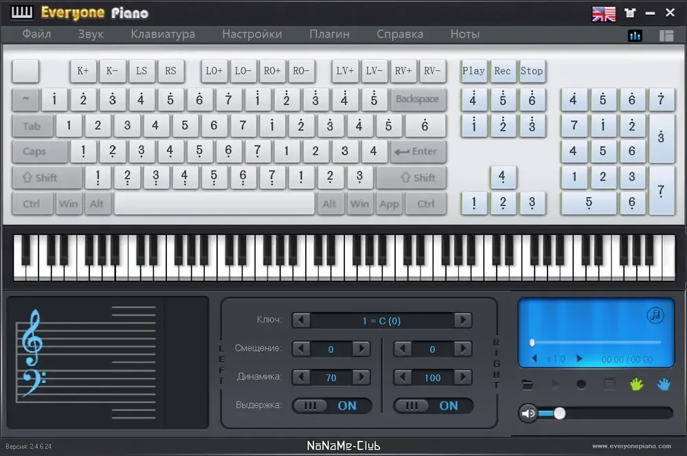 Everyone Piano представляет собой виртуальное фортепиано с интуитивным интерфейсом, позволяющим играть с помощью компьютерной клавиатуры или внешних MIDI-клавиш. Программа воспроизводит высококачественный звук, имитирующий акустическое пианино, и поддерживает широкий спектр настроек для изменения тембра, октавы и динамики. Пользователь может транспонировать звучание в реальном времени, регулировать темп и использовать встроенные обучающие материалы.