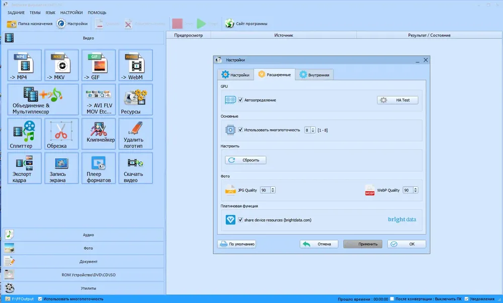 Format Factory представляет собой многофункциональное приложение, сочетающее в себе возможности конвертера, редактора и восстановителя медиаданных. Программа обеспечивает высокую скорость обработки файлов за счёт поддержки аппаратного ускорения и многопоточности. Она позволяет не только перекодировать контент, но и изменять его структуру — обрезать, объединять, извлекать звуковые дорожки и даже добавлять метаданные.
