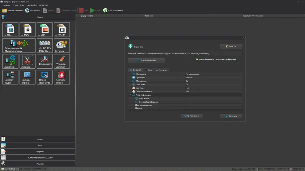 - Поддержка конвертации видео в MP4, AVI, WMV, FLV, 3GP, SWF и другие форматы
