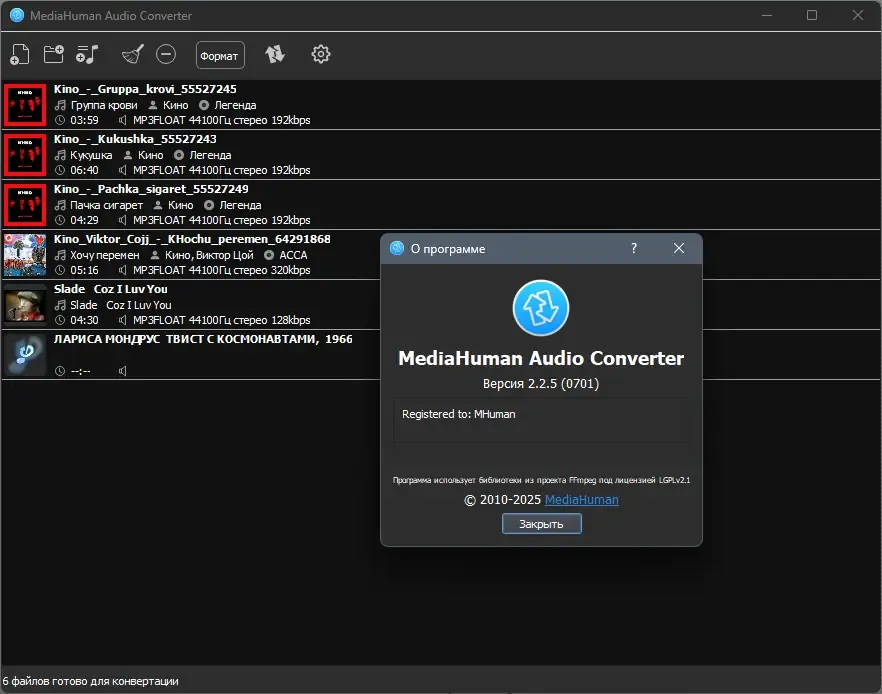 MediaHuman Audio Converter — это компактный и эффективный инструмент для преобразования аудиофайлов в популярные форматы без потери качества. Программа поддерживает широкий спектр кодеков и предлагает удобный интерфейс для быстрой конвертации. Подходит как для новичков, так и для опытных пользователей, работающих с музыкальными коллекциями.