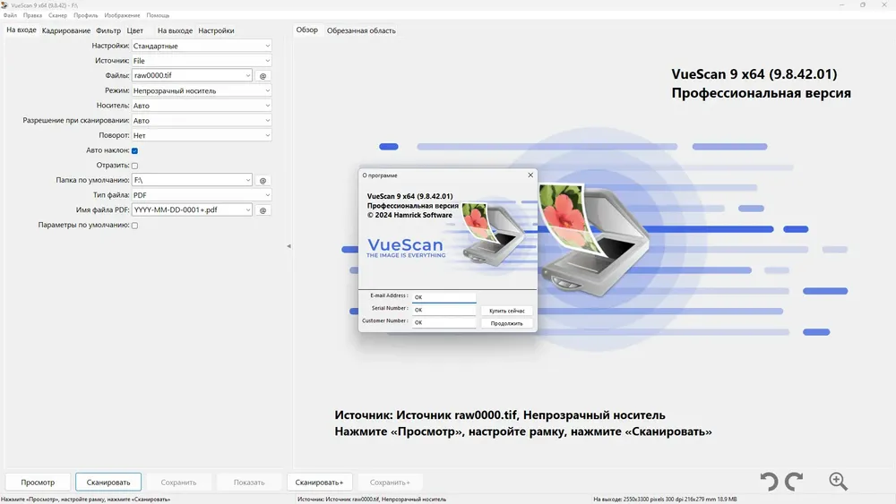 Программу можно установить на современные версии Windows, включая 10 и 11, как в 32-, так и в 64-битной разрядности. Доступна установка c ключом активации, а также портативная версия для использования без инсталляции. Дополнительно включены OCR-модули для распознавания текста на русском и украинском языках. Версия поставляется с мультиязычным интерфейсом и поддерживает тихую установку. Чтобы скачать бесплатно VueScan с ключом, достаточно использовать проверенный репак, включающий патч и лицензию. Для систем x64 скачать можно как 32-, так и 64-битную версию. Также доступен вариант скачать ключ отдельно при приобретении лицензии. Официальный ключ активации позволяет использовать программу без ограничений. Скачать c ключом можно в удобном формате, совместимом с основными конфигурациями оборудования.