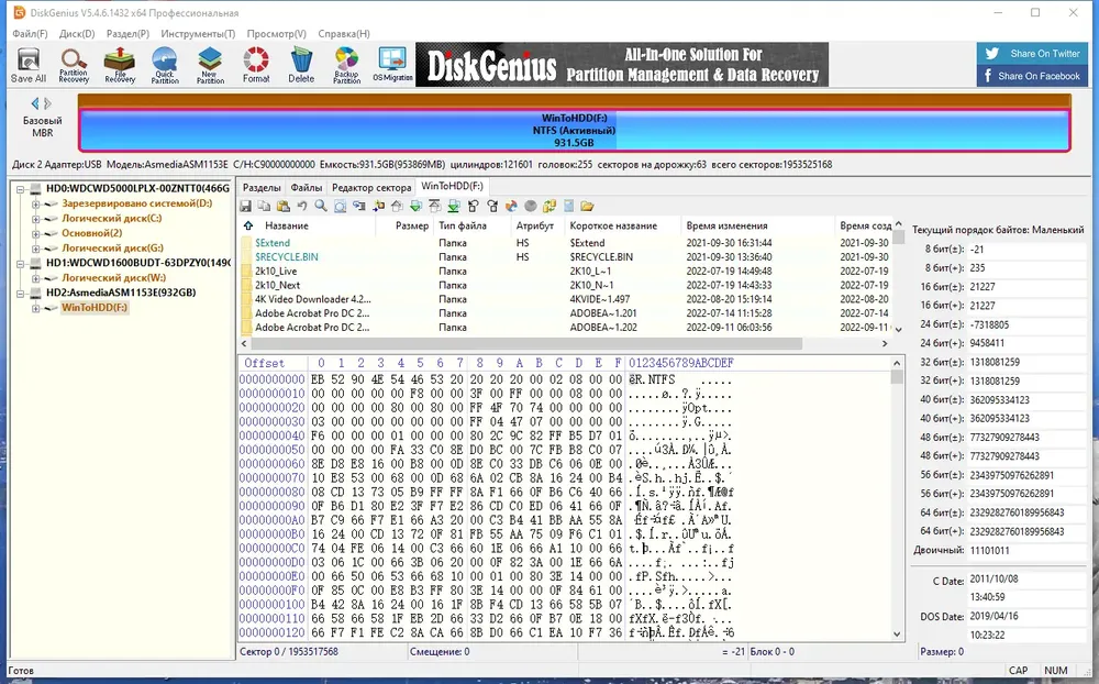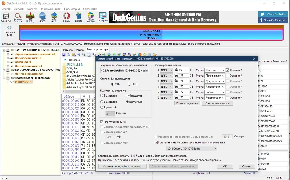 Использование DiskGenius не требует глубоких технических знаний. После запуска программа отображает все подключённые накопители в виде дерева с детализацией разделов, файловой системы и состояния. Для создания нового раздела достаточно выбрать свободное пространство, задать размер и файловую систему. Восстановление данных инициируется через контекстное меню, после чего запускается анализ диска с возможностью предварительного просмотра найденных файлов. Все операции можно выполнять как в основной среде Windows, так и через загрузочную флешку с DOS-версией утилиты, что особенно полезно при сбоях ОС.