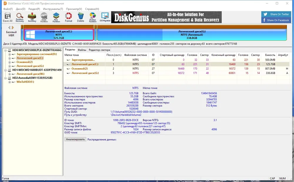 DiskGenius представляет собой комплексное решение для управления дисками и разделами в операционных системах Windows. Утилита поддерживает широкий спектр операций, включая создание, изменение размера, форматирование и удаление разделов. Особое внимание уделено восстановлению данных — программа способна находить как отдельные файлы, так и полностью утерянные разделы, даже после форматирования или сбоев файловой системы. Поддержка FAT, NTFS, EXT2/EXT3 и LVM2 делает её универсальной для работы с разными типами накопителей.