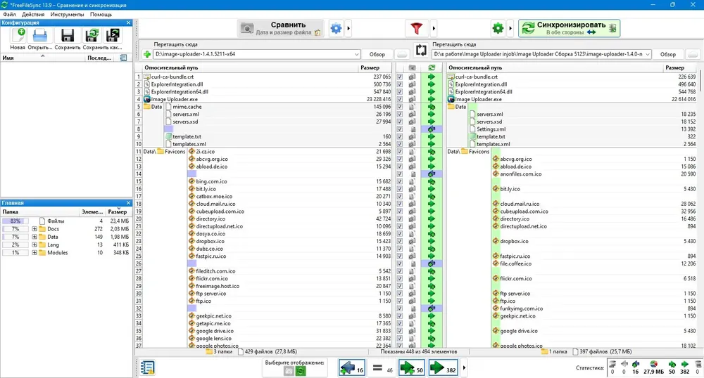 - Доступны различные режимы синхронизации: двусторонняя, зеркальная, обновление и ручной режим, что делает программу универсальной для разных сценариев.