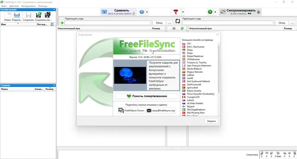 FreeFileSync — это бесплатная утилита для синхронизации и резервного копирования файлов, обеспечивающая точное сравнение по содержимому, размеру и дате изменения. Программа поддерживает большое количество файлов и папок, работает с сетевыми дисками, символическими ссылками и большими объемами данных. Интерфейс интуитивно понятен, а функционал охватывает все основные режимы синхронизации, включая зеркалирование, двустороннюю синхронизацию и резервное копирование с фильтрами.