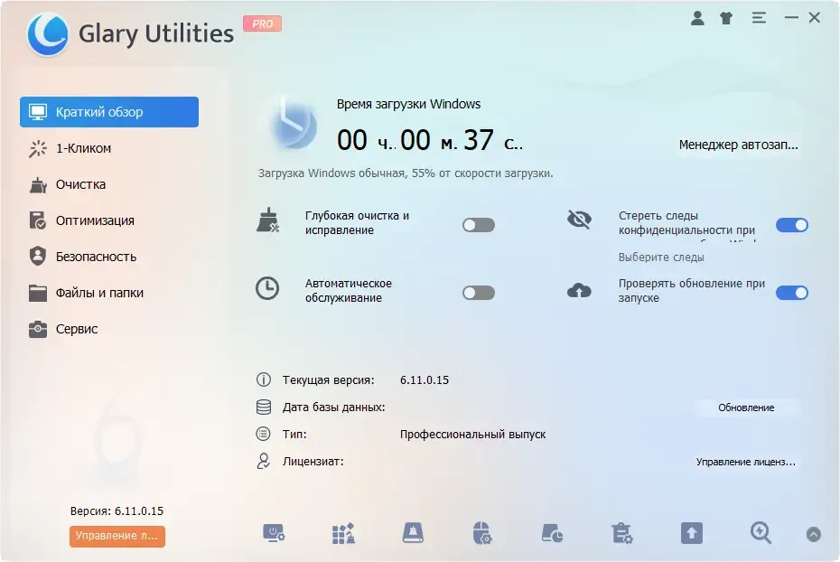 Glary Utilities сочетает в себе широкие возможности и простоту использования, что делает его популярным решением среди системных утилит. Он эффективно справляется с оптимизацией и поддержанием чистоты системы, не требуя глубоких технических знаний. При этом наличие продвинутых функций, таких как разделение файлов или шифрование, расширяет его применение.