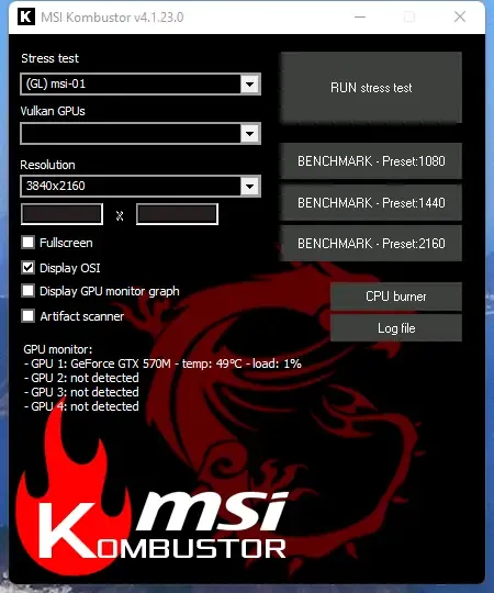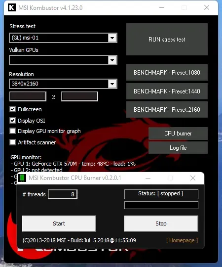 MSI Kombustor изначально разработан как инструмент для тестирования видеокарт, особенно моделей от компании MSI, но совместим со многими GPU других производителей. Основой приложения стал движок FurMark, дополненный специализированными тестами, такими как TessMark, Phong-Donut и PBR-Donut, что позволяет проводить комплексное тестирование. Программа активно используется оверклокерами, системными администраторами и энтузиастами для проверки стабильности системы после разгона или установки нового охлаждения.