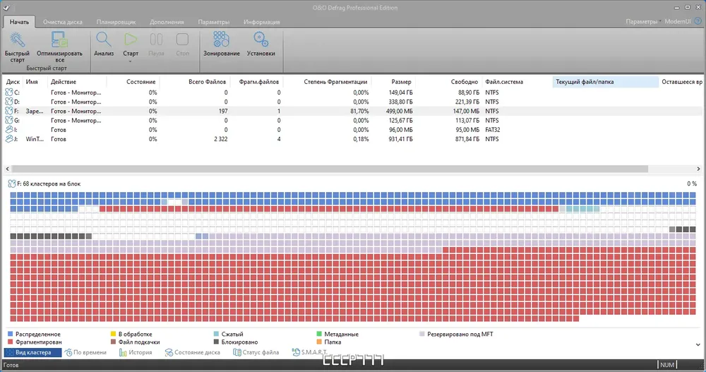 - Значительное ускорение работы системы за счёт устранения фрагментации.