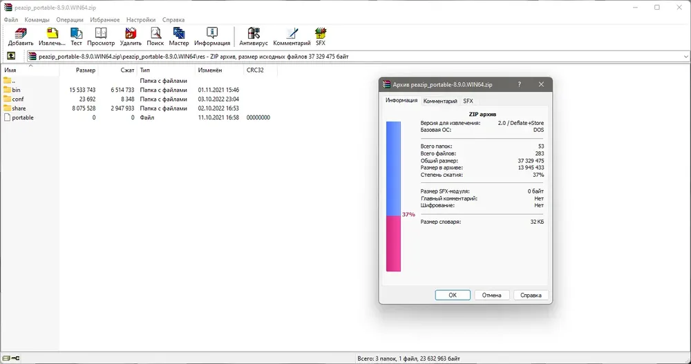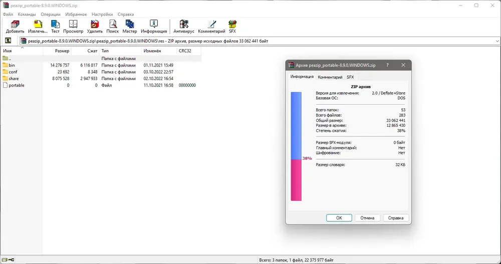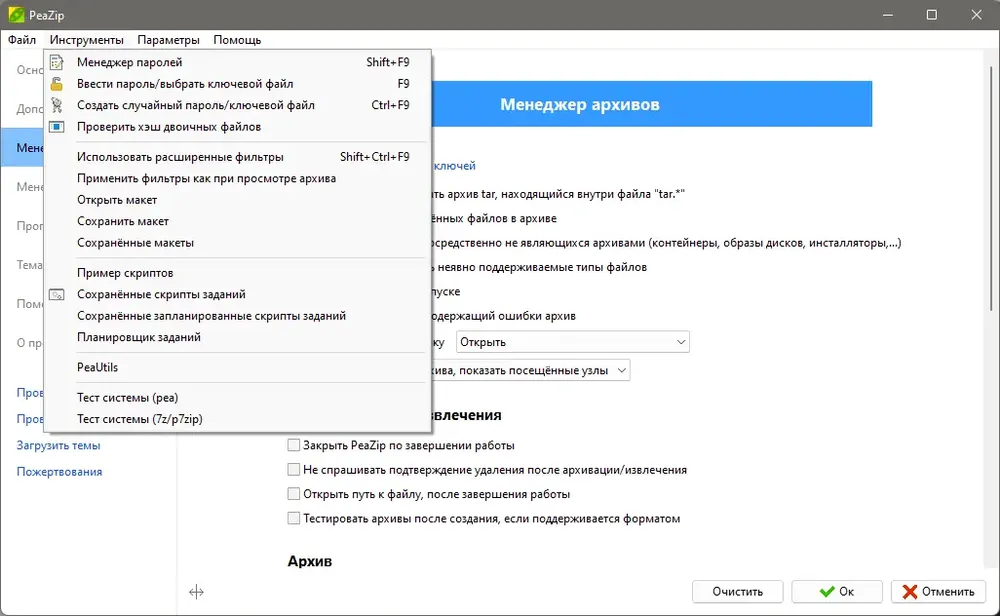 PeaZip сочетает простоту интерфейса с продвинутыми возможностями, подходящими как для новичков, так и для опытных пользователей.