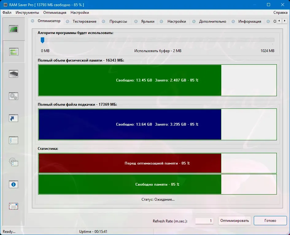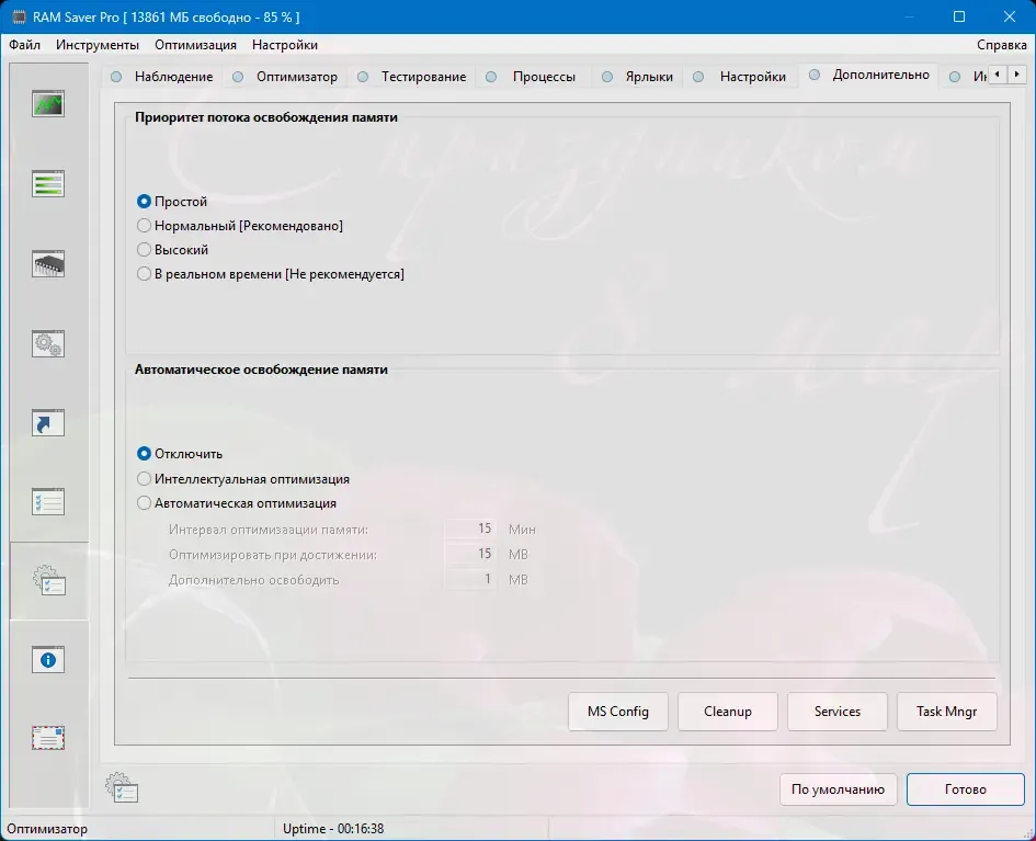 RAM Saver демонстрирует высокую эффективность в управлении памятью, особенно на системах со скромными аппаратными характеристиками. Утилита работает стабильно, не создавая лишней нагрузки на процессор. Её интерфейс интуитивно понятен, а наличие портативной версии расширяет сценарии использования. В то же время, для современных ПК с большим объёмом RAM эффект может быть менее заметен, особенно при отсутствии утечек в приложениях.