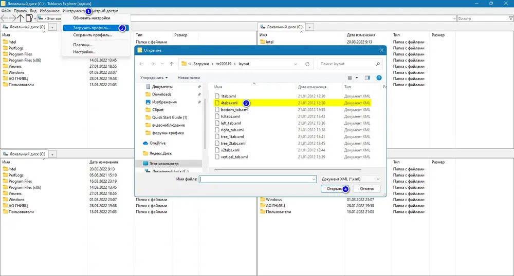 Tablacus Explorer представляет собой альтернативу встроенному файловому проводнику, ориентированную на эффективность и удобство. Интерфейс приложения напоминает привычный Проводник, но дополнен современными элементами, такими как вкладки и настраиваемые панели. Пользователь может одновременно работать с двумя или четырьмя областями просмотра, что ускоряет копирование, перемещение и сравнение содержимого каталогов.