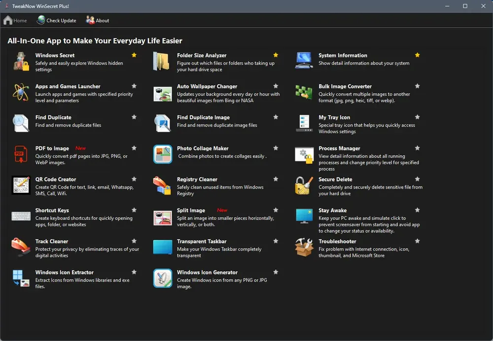 Преимущества TweakNow WinSecret Plus включают расширенный функционал, простоту интерфейса и отсутствие необходимости в лицензировании. Plus-версия добавляет инструменты для автоматизации тем, управления файлами и анализа системы. Присутствуют встроенные средства очистки дубликатов, мониторинга процессов и полного удаления данных. Программа также помогает восстанавливать работу интернет-подключений и системных компонентов.