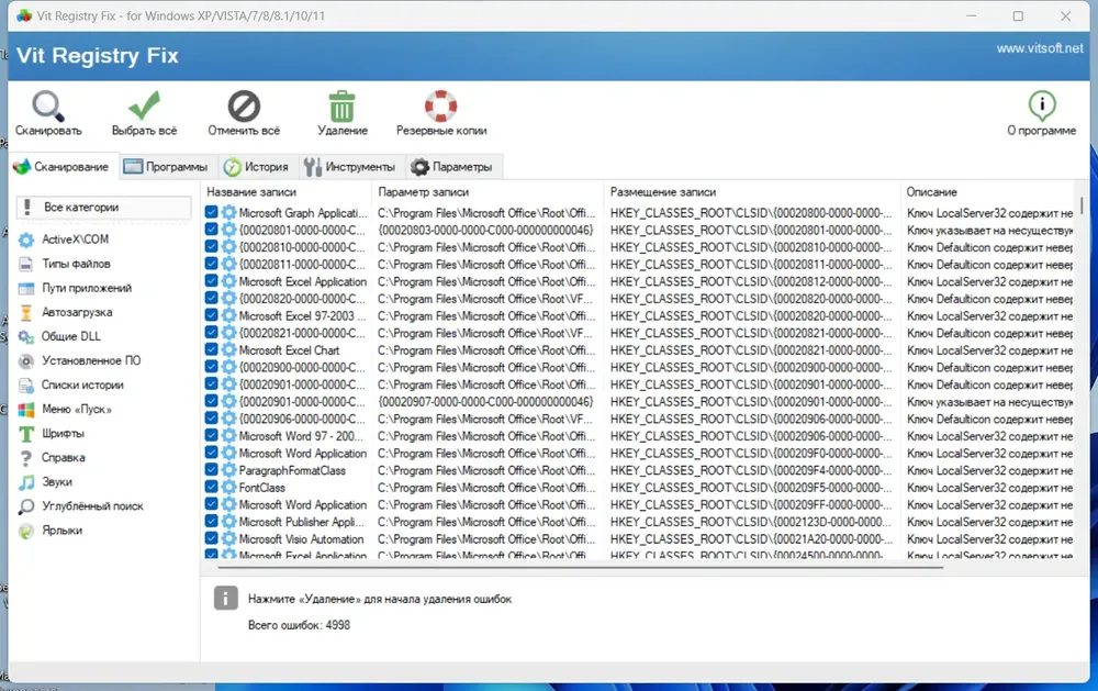 Vit Registry Fix сочетает в себе высокую точность сканирования и щадящее взаимодействие с системными компонентами. Программа способна обнаруживать более пятидесяти типов ошибок, включая остаточные записи от удалённых приложений, неверные пути к файлам и битые ссылки. Инструмент поддерживает как автоматическое, так и ручное управление процессом очистки, позволяя пользователю контролировать каждый этап оптимизации.
