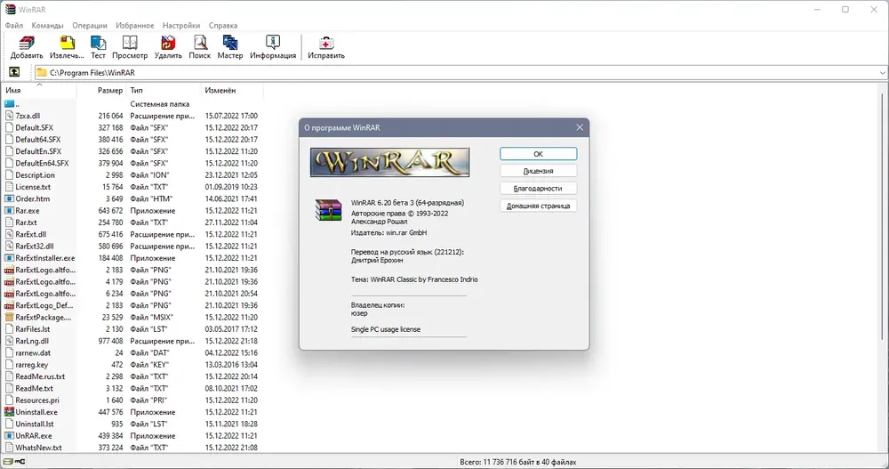 WinRAR — мощный и надёжный архиватор, поддерживающий широкий спектр форматов, включая RAR, ZIP, 7Z, ISO и другие. Программа обеспечивает высокую степень сжатия, шифрование данных и работу с многотомными архивами, что делает её незаменимой для повседневного использования и профессиональных задач.
