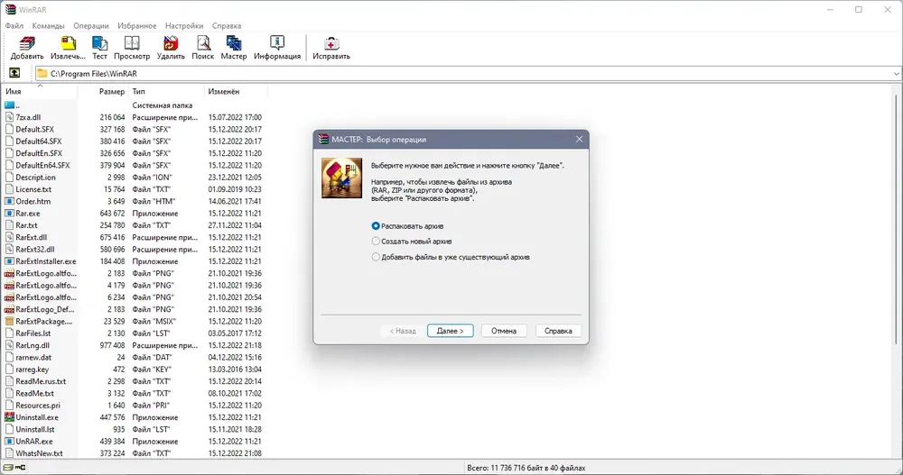 Описание WinRAR