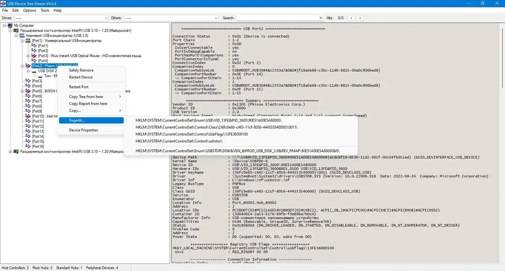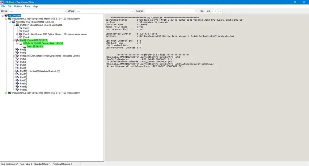 - Полная визуализация USB-иерархии с возможностью быстрого поиска