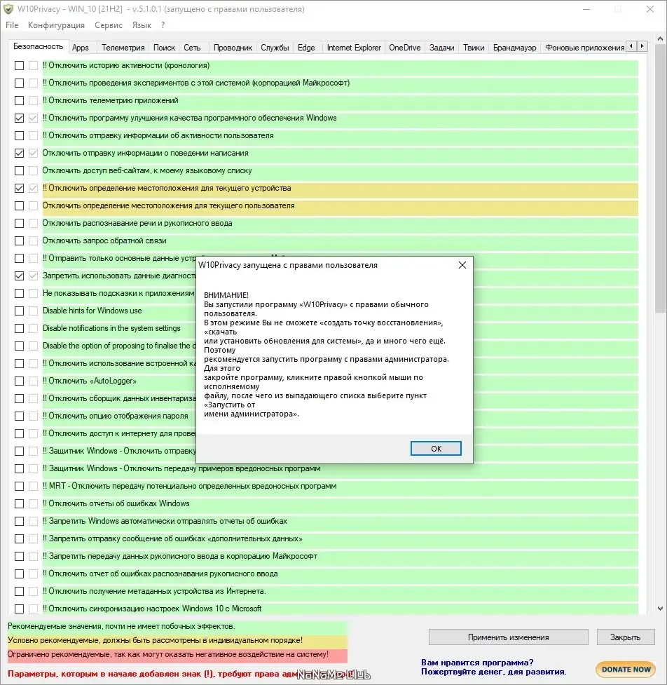 Как пользоваться W10Privacy